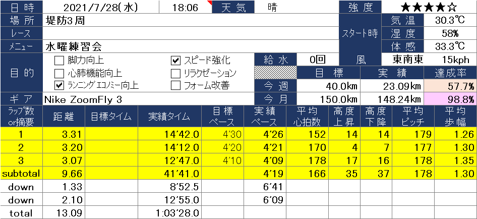 前回は2周でバテてしまいましたが、今日は入りのペースを少し落としたため、何とか3周もつことができました![]()