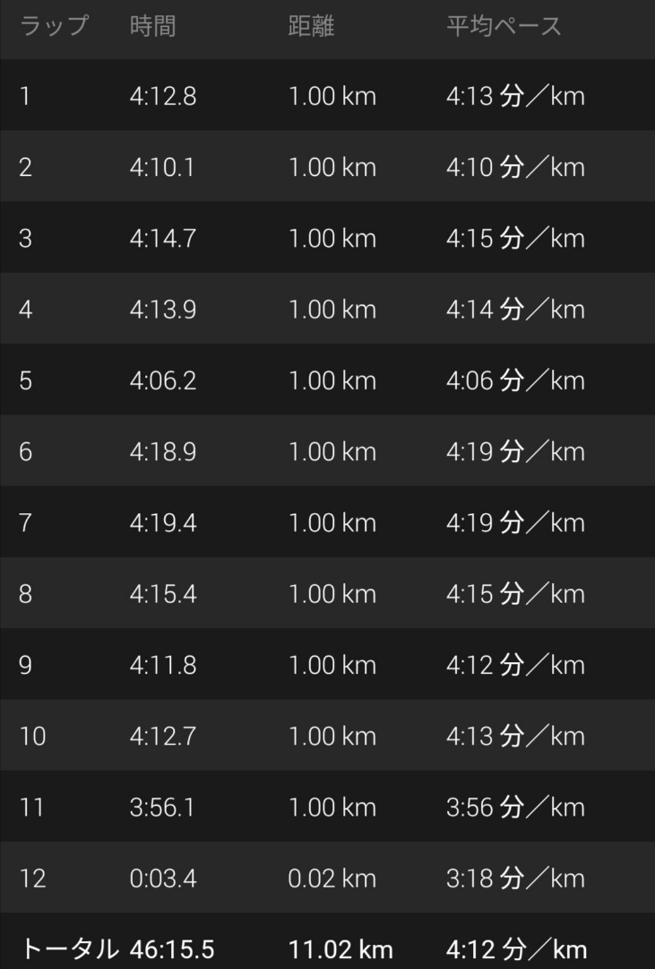 • 休日ラン 12㎞ペース走 4’15~3’55/km