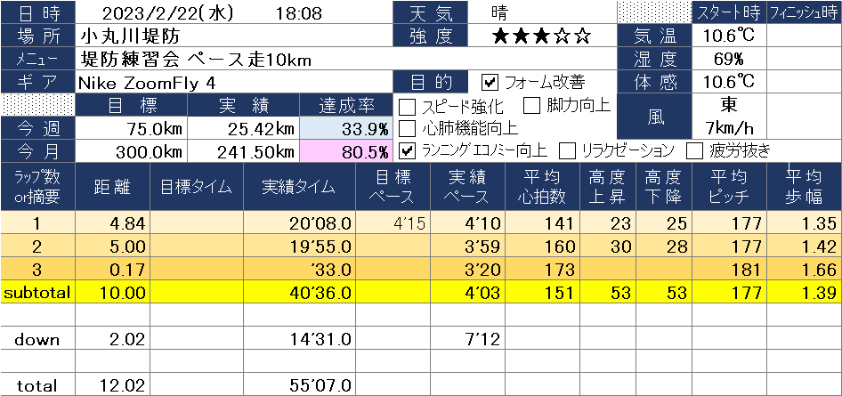 いつもは最後の1kmほどスパートするのですが、レース前ということでそこまで追い込まずに若干ペースアップしたところで練習を終えました。