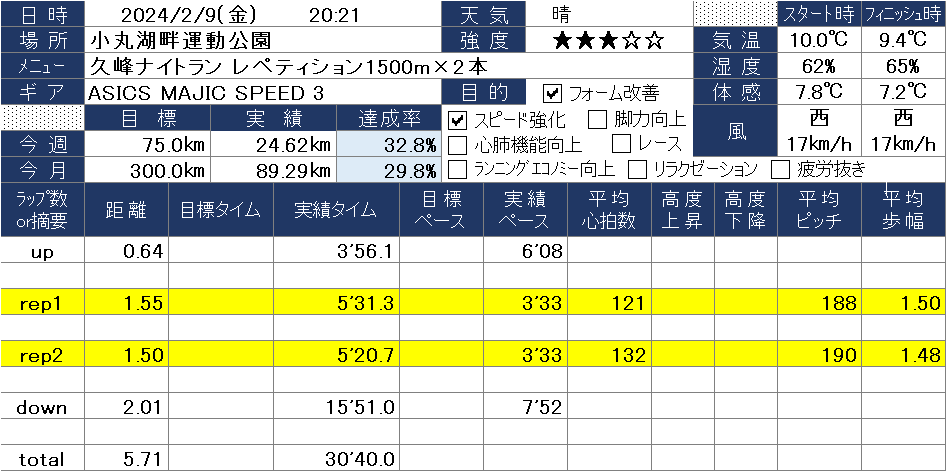 金曜日の久峰ナイトランの練習会はちょっと頑張り過ぎ…💦