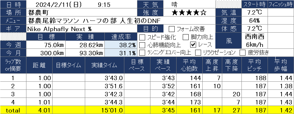 ノーアップのためか、1週間前の別府大分毎日マラソンの疲れか、なかなか出力が上がらない。