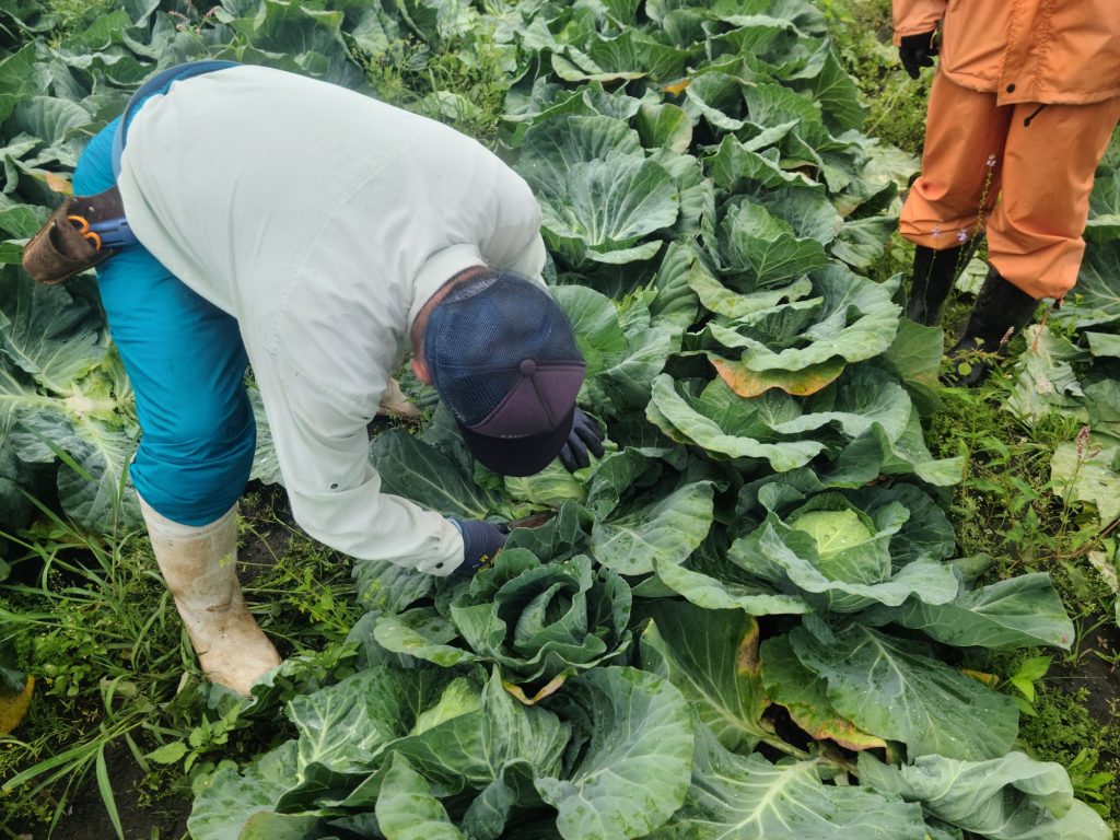 次に、お隣の圃場に移動して、キャベツの収穫。