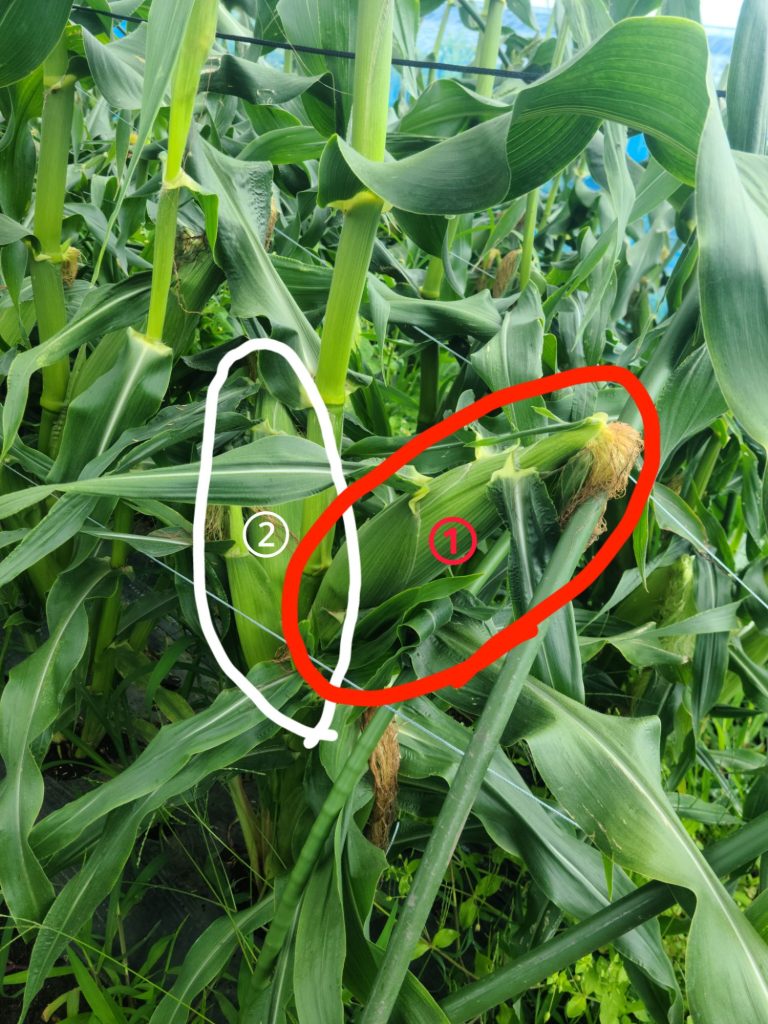 今日は1番目の雌穂を収穫し、2番目の雌穂はまだ大きく育ってないので、時間をおいて収穫するそうです。