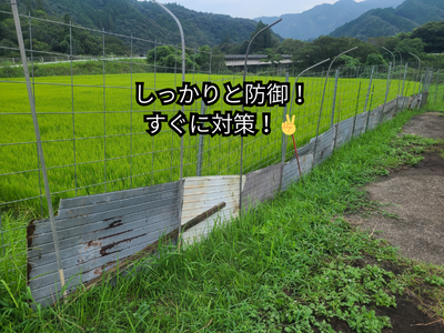 そして8/22(金)、同じ地区の先輩から「朝電話したっちゃけど、ゆきぼんとこの田んぼにイノシシが入っちょったよ。家に電話したけど、出らんかったわ。」と言われ、恐る恐るその田んぼに向かうと、やっぱりあいつにやられてました。